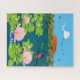 Paisagem tropical australiana norte colorida, com uma vassoura em voo, azure kingfisher, jacana com crista de pente, crocodilo, búfalo d'água. Pense no Parque Nacional de Kakadu durante a estação úmida monsoonal. Personalize o texto no quebra-cabeça de quebra-cabeça.