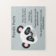 Um quebra-cabeça de quebra-cabeça fofo, descubra fatos de panda divertidos. Apresentando um fundo azul com uma ilustração de panda, a parte frontal da borracha apresenta vários fatos de panda. Esta é uma forma excelente de aprender novas informações. Panda: Trabalho de arte criado por: AMBilustrações http://www.etsy.com/shop/AMBillustrations/
