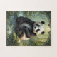Ein kleiner Panda sitzt im Wald an einem Bach.