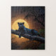 Quebra-cabeça Pantera Negra Cachorra deitada em uma Lua Vermelha