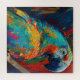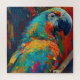 Quebra-cabeça para quem gosta de papagaios. Esta é uma bonito ilustração ai num estilo de pintura a óleo de um papagaio azul, vermelho e amarelo da Macaw.