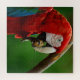 Um belo papagaio vermelho tropical com uma noz neste quebra-cabeça espetacular.