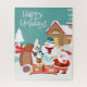 Um adorável design de Papai Noel e amigos apreciando as férias juntos.