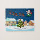 Papais noeis e suas renas sobrevoando casas no Quebra-cabeça de Natal