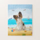 Um cão-papão sentado na praia é uma ideia perfeita de presente para alguém que ama esta raça de cães.