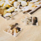 Este pisco de peito vermelho pequeno veio perto de nós quando sentado em uma mesa fora de um lugar de creme do chá, procurando migalhas ou esperando migalhas ao deixado cair perto dele.