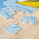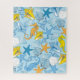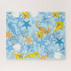 Um padrão de dedos de conchas, estrelas-do-mar e cavalos-marinhos em tons de azul, amarelo, preto e branco. Perfeito para a pessoa que vive com a forma mais comum de cegueira das cores.