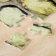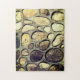 Um quebra-cabeça simples de um cheio da parede de pedras diferentes na luz solar.