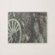 Esta Quebra-cabeça de Jigsera mostra uma imagem de uma velha roda de vagão que estava do lado dela com alguns picos faltando com a Escritura de Salmos 71:9 impressa na face da quebra-cabeça.