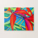 Este quebra-cabeça de quebra-cabeça apresenta uma abstrato colorida imagem de um pássaro tropical havaiano de flor do Paraíso. Sombreados e bonitos tons de laranja, verde, azul e amarelo fazem desse quebra-cabeça bonito um desafio espantoso para aqueles que amam arte vibrante.