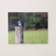 Ponha suas habilidades de fazer à prova com esta foto de um pássaro azul da montanha do Tennessee empoleirado em um posto de cerca. quebra-cabeça de serra de 8 x 10 polegadas com 110 peças.