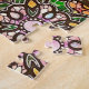 A artista de San Diego, Julie Ann Stricklin, pintou manualmente uma série de mandalas de vidro manchado que foram colocadas juntas para criar um quebra-cabeça divertido e esperamos desafiador para toda a família.