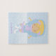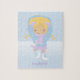Quebra-cabeça de serra personalizada apresenta uma bela ilustração vetorial de uma menina patinando gelo e flocos de neve no fundo. Personalize com o nome, monograma, iniciais ou texto de sua filha para um presente gentil.