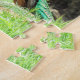 Um pavão brilhante colorido se posiciona sobre uma colina baixa sob as árvores. Ele parece estar a vigiar o campo circundante. O azul brilhante do pescoço e da cabeça destaca-se no centro da quebra-cabeça, contra as folhas verdes de oliveira das árvores atrás.