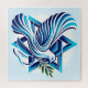 Esta peça impressionante apresenta uma pomba graciosa em voo de médio, suas asas se espalham e um vibrante galho verde de oliveira, delicadamente simbolizando a esperança. A pomba, renderizada em tons brancos suaves, contrasta lindamente com o pano de fundo de uma estrela azul e ousada de David, que captura o olho e o coração com sua profundidade e significado.