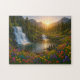 Quebra-cabeça Peaceful Mountain Waterfall Puzzle with Sunrise