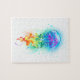 Água-viva grande, iridescente, desenhada artisticamente, brilhante, com longos tentáculos em branco, pintados sobre fundo de cor aquosa multicolor. Água-viva.
