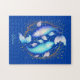 Quebra-cabeça em uma ilustração dos Peixes de sinais zodiacos com dois peixes koi graciosamente entrelaçados, azuis e roxos, refletindo dualidade, emoções profundas, e uma conexão com sonhos, espiritualidade e subconsciente.