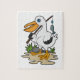 Quebra-cabeça Pelicano como pescador com cana de pesca e peixe