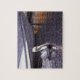 Com uma pausa para olhar em direção à câmera, o pelicano marrom na fotografia original de MaeFlowers nesta Quebra-cabeça de Jigserra está deslizando ao longo da água de um canal na Costa do Golfo da Flórida. O arco de um barco branco ao fundo mostra as reflexões cintilantes da água azul. A foto está em tons de azul, cinza macio e castanhos da doca de madeira ao fundo, refletindo sobre a água.