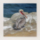 Um belo pelicano caminhando no oceano nesta maravilhosa quebra-cabeça.