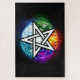 Pentagrama luminoso desenhado artificialmente com cinco elementos mágicos, água, terra, fogo, astral, ar sobre fundo negro. Pentagrama Wiccan. Wicca