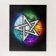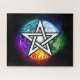 Pentagrama luminoso desenhado artificialmente com cinco elementos mágicos, água, terra, fogo, astral, ar sobre fundo negro. Pentagrama Wiccan. Wicca