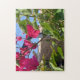 Quebra-cabeça de lagarto de espada. Encontre o lagarto a espreitar-se enquanto trabalha nesta quebra-cabeça. Apresenta uma fotografia de um jardim com lindas flores de bougainvillea cor-de-rosa e verde contra uma cerca de tijolos. E um réptil fofo!