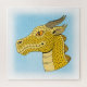Esta arte original de fantasia de Richard H. Fay mostra a cabeça de um dragão amarelo-ouro âmbar em perfil.