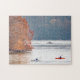 Dois kayakers com artes de pesca no rio Susquehanna logo após o nascer do sol em um dia de outono.