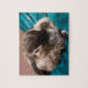 Esta quebra-cabeça bonita mostra uma fotografia adorável de um coelho de orelha-vara de estimação nos braços de uma menina. Fotografia criada pela fotógrafa Maria Jeffs, prêmio vencedora.