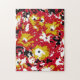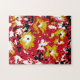 Um vibrante design vermelho, amarelo, preto e branco pop de petúnias.