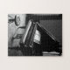 Uma quebra-cabeça para enquadrar com uma foto de um lindo piano clássico, um estilo antigo em preto e branco.