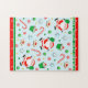 Quebra-cabeça de Natal criativo com Papais noeis engraçados e doces.