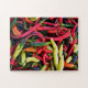 Cesta do quebra-cabeça de serra de vaivém colorido das pimentas de pimentão.