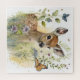 Belo veado-bebê e quebra-cabeça de pintura de borboleta.