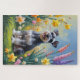 Quebra-cabeça Pintura das Flores de Cachorro Schnauzer
