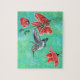 Pintura acrílica de um beija-flor pairando sobre algumas papoilas vermelhas. Inspirada pela minha própria fotografia tirada no meu jardim.