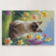 Quebra-cabeça Pintura de Flores de Gato Siamês