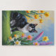 Quebra-cabeça Pintura de Flores de Mola de Gato Tuxedo