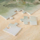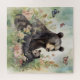 Quebra-cabeça com a bela pintura de um urso-mãe e seus dois filhotes sentados em um pedaço de flores rosa bonito com borboletas coloridas dançando sobre suas cabeças.