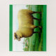 Uma pintura tênue de ovelha ou borrego num campo ou pastagem de erva verde macia.