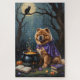 Entra numa noite mágica de Halloween com esta pintura de óleo balbuciosa apresentando um adorável filhote de bruxa, sentado ao lado de um caldeirão borbulhante numa floresta sombria. Cercado por poções brilhantes, livros ortográficos antigos e faíscas mágicas cintilantes, a cena é cheia de mistério e charme. Texturas vítreas ricas e matizes profundos do Halloween criam uma vibração acolhedora e encantada perfeita para amantes da estação assustadora.