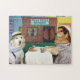 Este quebra-cabeça apresenta recuperadores de ouros vestidos de pioneiros. Eles estão comendo em uma taverna.