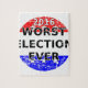 Os piores candidatos de sempre. Círculo em vermelho, azul e branco, texto em preto com contornos brancos. Efeito perturbado aplicado ao design.