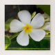 Uma bela Flor de Plumeria Havaiana com botões e folhas. Pétalas brancas com meio laranja amarelado contra as cores verdes naturais das folhas.