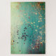 Um sombreamento ombre de uma bandeja verde azul é o pano de fundo das estrelas douradas em chuva e algumas escuras para contrastar com a poeira estelar em shimersão. Um quebra-cabeça de diversão cósmica para todos