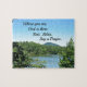 Montanha pacífica e cena do lago, com uma pequena citação: "Onde você está, Deus está lá...Descanse, Relaxe, Diga uma Oração. G. Rouse"