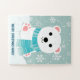 O tema do bebê ártico crianças quebra-cabeça do quebra-cabeça de Natal mostra um filhote de urso polar fofo empacotado num cachecol de inverno sentado na neve com um fundo de flocos de neve. Você pode personalizar o nome e a saudação de um presente de feriado único para um garoto ou uma garota. Trabalho de arte original do KL Stock.