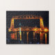 Uma fotografia da ponte aérea levantada à noite. Foto tirada em Duluth Minnesota.